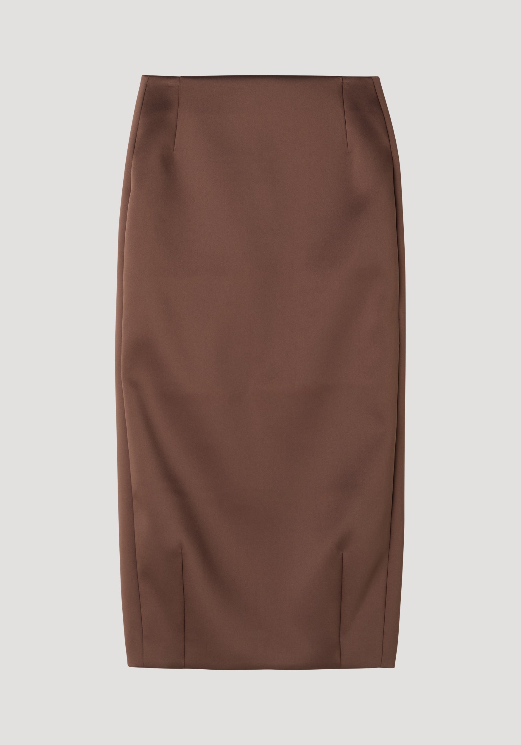 Our classic column skirt, reimagined this season with a sculptural balloon cut. The high waist and long-line silhouette elongate the figure, finished with subtle dart detailing and a back slit for ease.