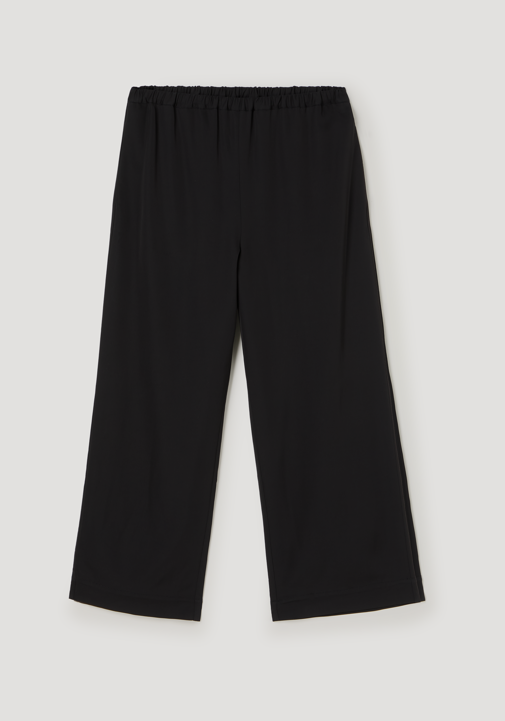 Cropped trousers with a wide-leg silhouette, crafted from technical jersey fabric. Designed with an elasticated waist, ankle-length fit, and side seam pockets for everyday ease.