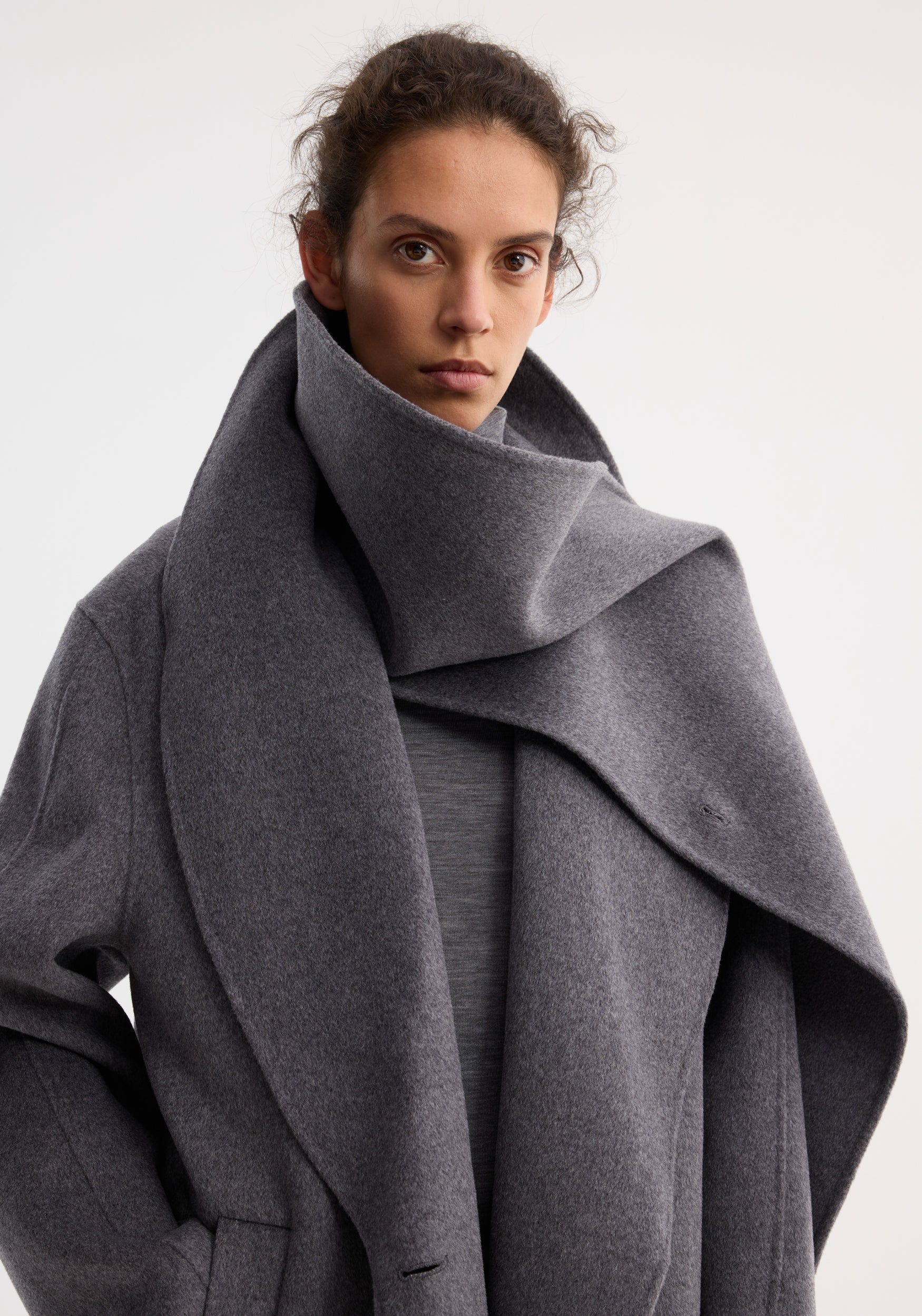This standout coat crafted from a soft wool and cashmere blend showcases a striking double-layered scarf collar detail. Designed with meticulous attention to detail it’s the perfect everyday coat with a touch of sophistication.
